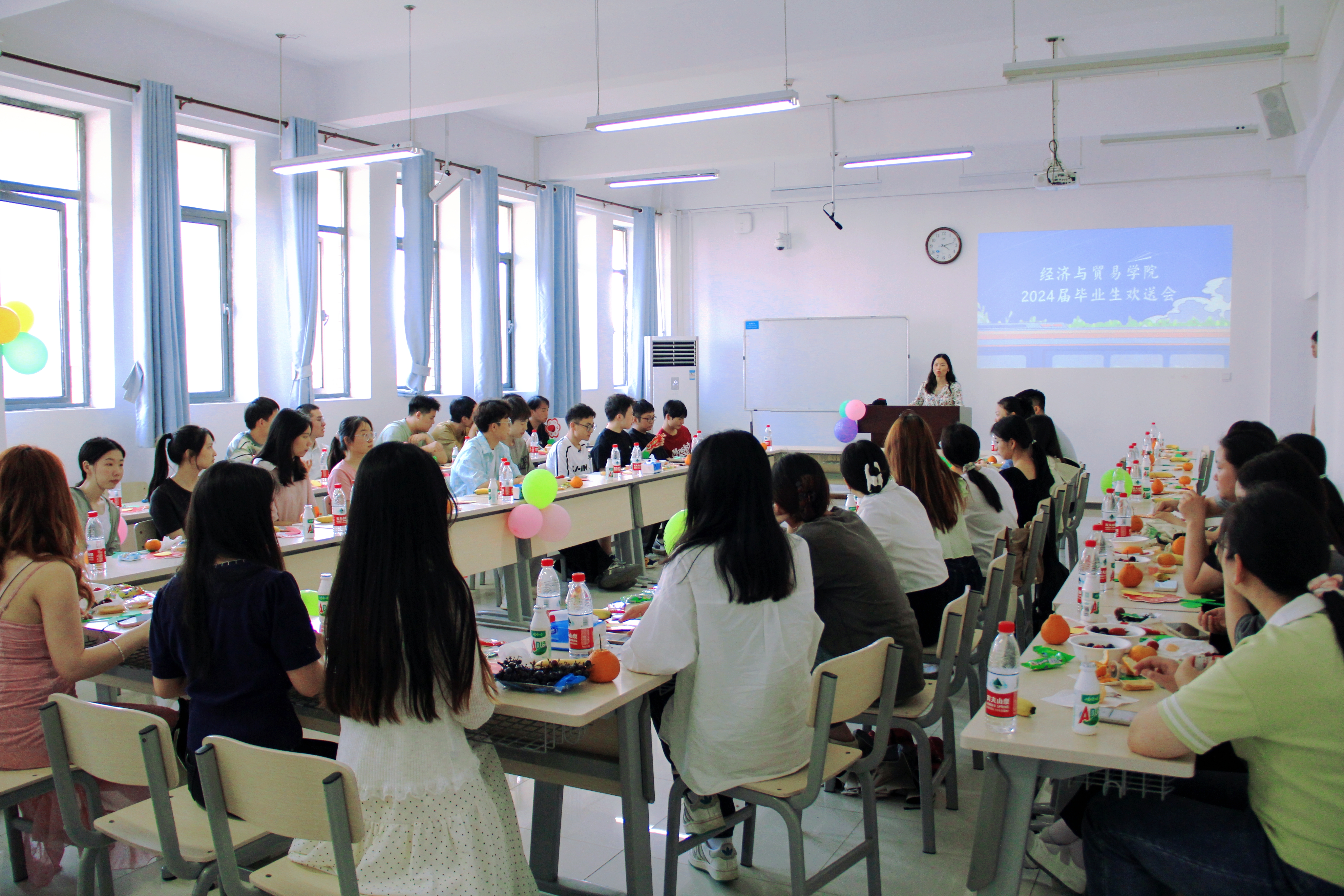 本网讯(通讯员 吴豪)5月17日下午,公司在教5举行2024届毕业生欢送会,经理赵锋、副经理陶珍生、副经理乔长涛、党委副书记丁升、系主任、毕业班班主任出席活动。欢送会分经济学、商务经济学、国际经济与贸易三个专业分别开展,由毕业班辅导员主持。