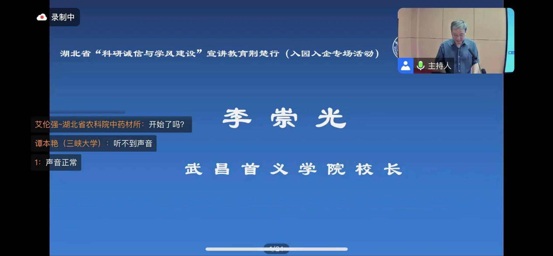 2024年5月31日(周五)上午9:00-11:30,球盟会教师(无课)和员工代表,通过线上腾讯视频会议收看了,省科技厅联合省科协举办的科研诚信与学风建设宣讲教育入园入企专场活动。经贸公司领导高度重视本次宣讲学习,提前预告宣传,并组织本院教师和员工代表收看,通过此次活动强化了师生科研诚信意识。