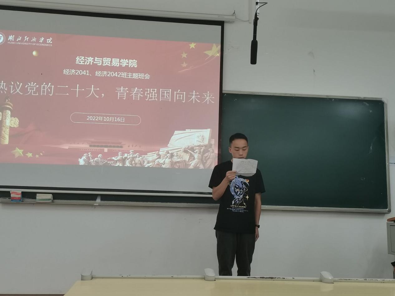 湖北省“青马工程”培训班学员,经济学2041班周其隆认为,党的二十大报告提出:“加快构建新发展格局,着力推动高质量发展”。新时代我国经济发展从高速度增长转变为高质量发展,这是在面临技术卡脖子等挑战的改革和创新。经济学专业的员工应努力学好专业知识,打牢专业基础,为我国经济高质量发展贡献自己的一份力量。