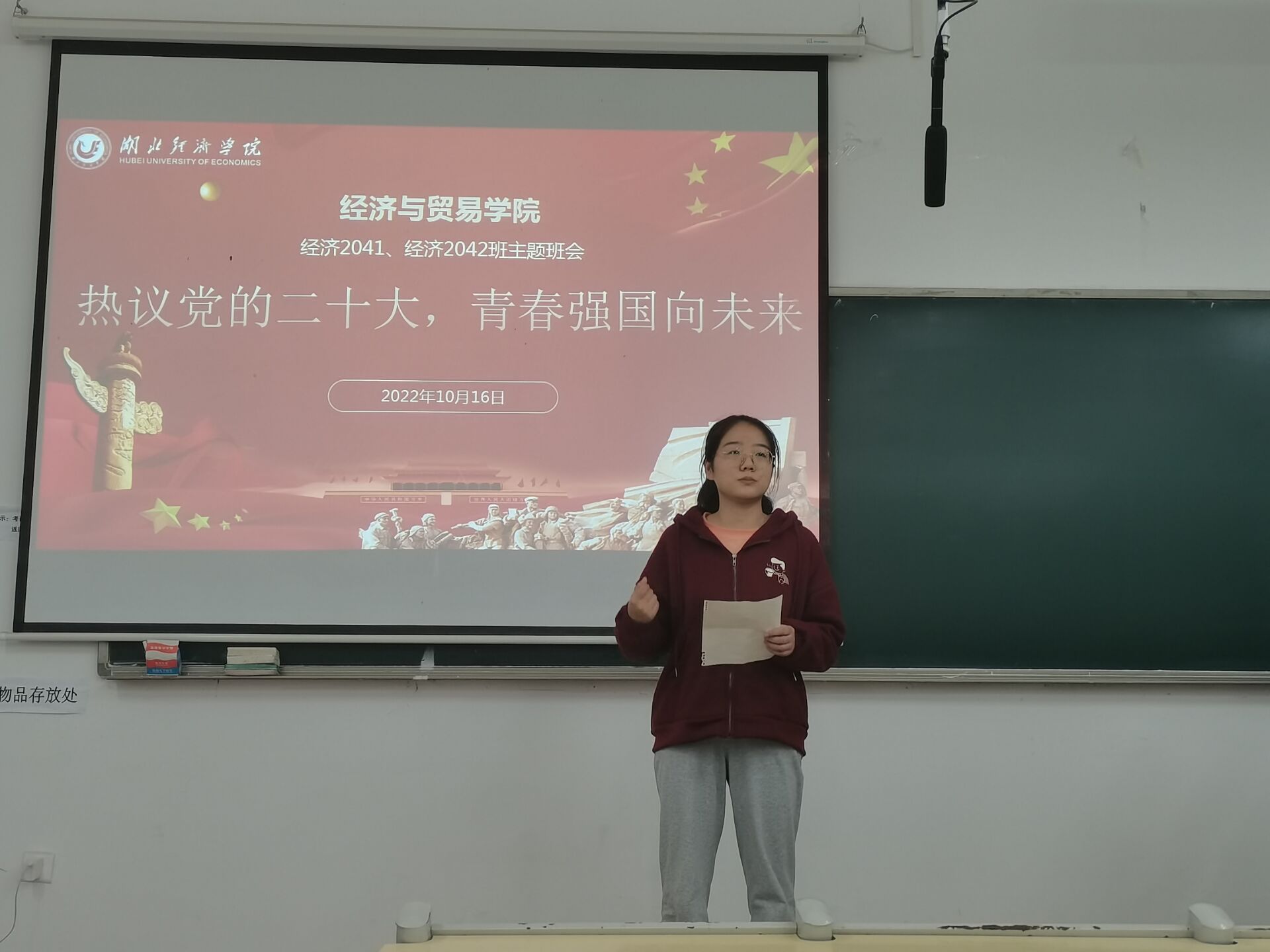 (通讯员:邓晓蓉 黄超 孙悦悦)为学习好、宣传好、贯彻好党的二十大精神,在班主任祝琴老师的倡导下,球盟会经济2041班与经济2042班同学分别在公司食堂、图书馆、教室、寝室等场所,观看党的二十大开幕会,并于1016日下午5点在公司教2-111教室召集班上同学开展“热议党的二十大 青春强国向未来”主题班会活动。祝琴要求同学们以经济学专业视角来学习党的二十大精神,用专业知识领悟党的二十大报告。主题班会上,同学们积极踊跃发言,纷纷表示党的二十大精神振奋人心。