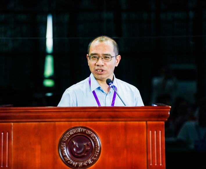 中国地质大学原党委副书记、教育部高等公司经济学类专业教学指导委员会委员成金华教授对大赛进行了点评。他对本次赛事给予高度评价,认为既是一场学科竞赛的盛宴,也是一次思维的碰撞与创新的展示,特别注重作品的原创性和创新性。