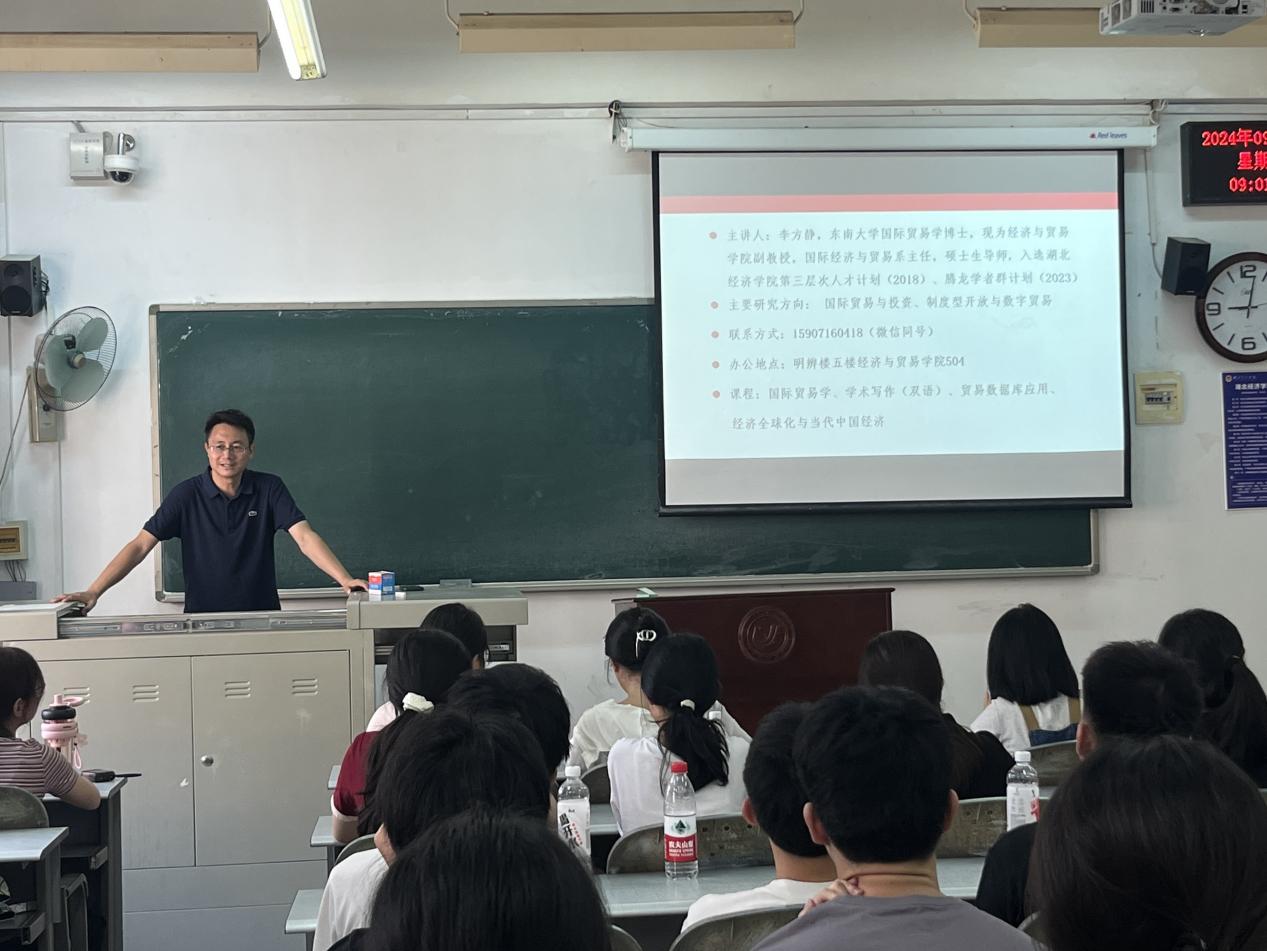 国际经济与贸易系系主任李方静老师从专业发展现状、专业定位与目标、专业优势与特色、就业概况四大板块展开介绍,详细讲解了《国际经济与贸易本科人才培养方案》,并对当前国内和国际的贸易现状进行了解读,增强了新生的专业认知。