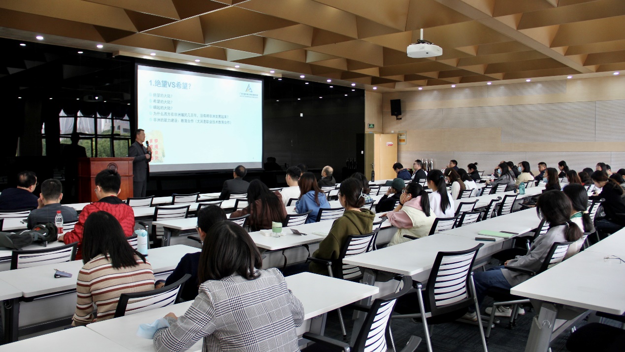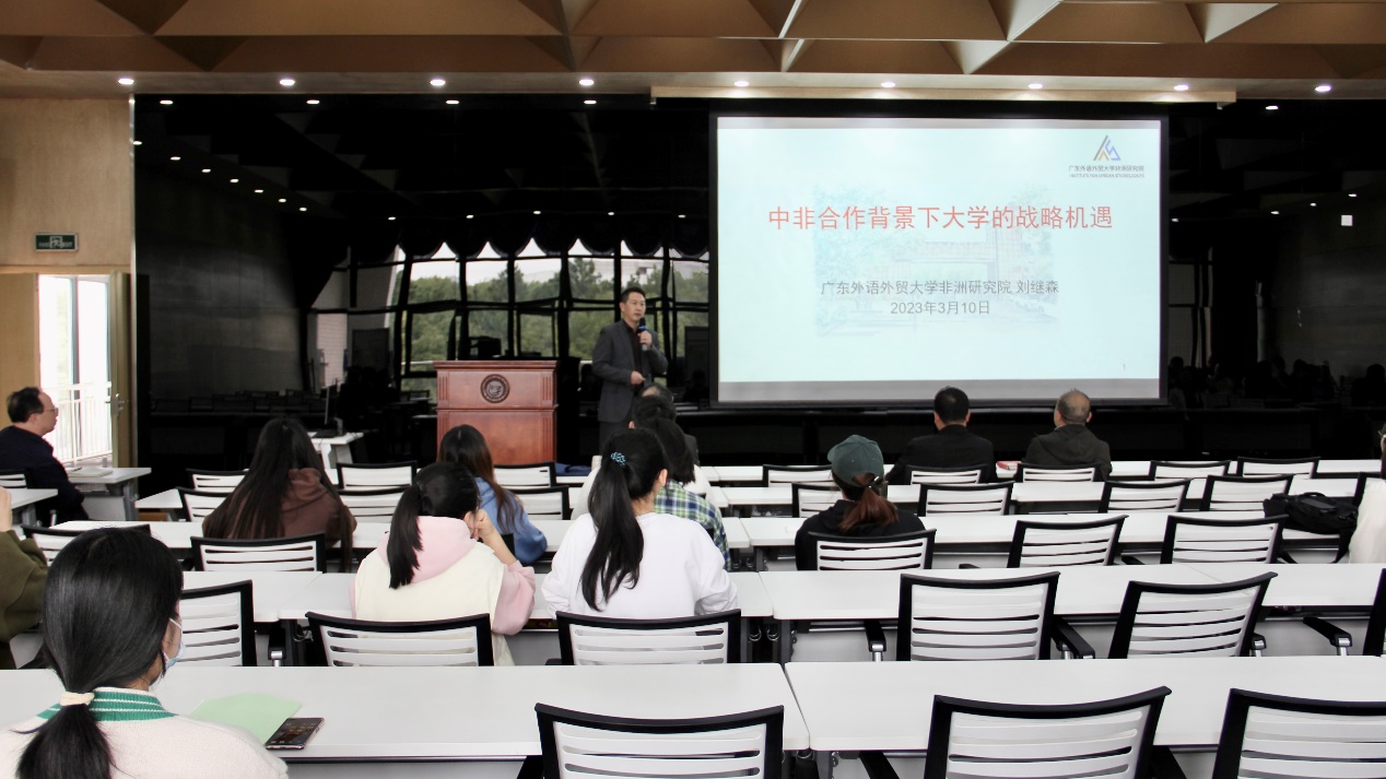 3月10日,由国际交流与合作处主办,球盟会、外国语公司联合承办的“教师国际化培训系列活动暨藏龙经贸论坛(第二期)”在五号教学楼1号报告厅顺利举行。本次活动邀请到了广东外语外贸大学非洲研究院经理刘继森教授做题为“中非合作背景下大学的战略机遇”的学术报告。报告会由球盟会经理赵锋教授主持,球盟会、外国语公司部分教师,经贸公司硕士研究生和部分本科生代表百余人参加。
