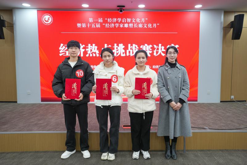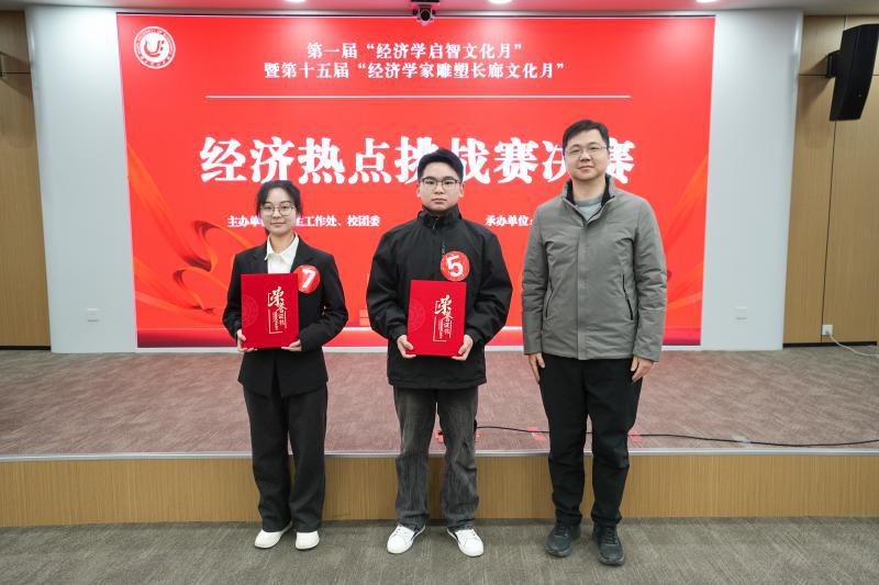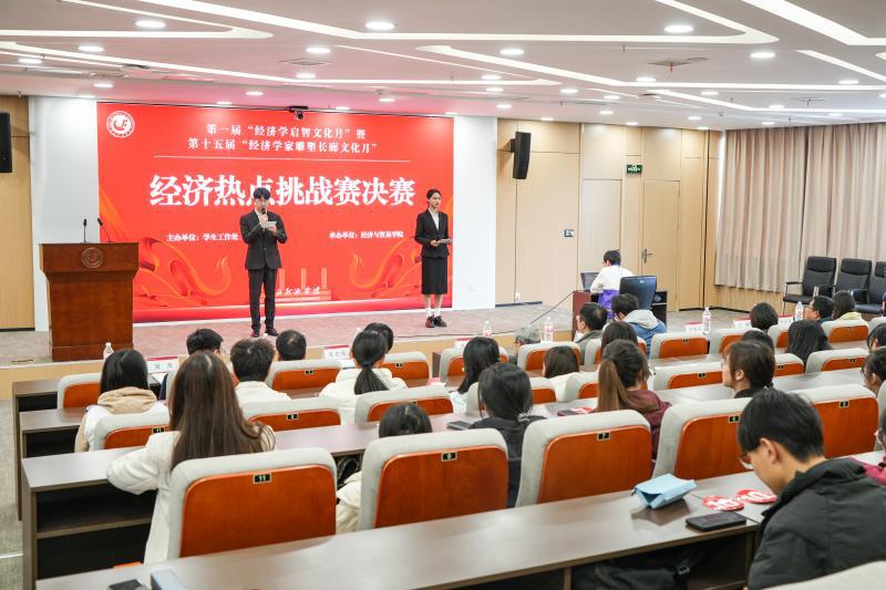 决赛分为经济学热点分析和经济学创新挑战两个环节。决赛现场,各参赛队伍通过PPT 演示、数据模型分析、案例对比等多种方式,围绕“新质生产力赋能城乡共同富裕”、“新质生产力发展如何助力产业绿色转型”和“中部地区高等教育人力资本投资如何促进新质生产力发展”这三个主题进行全方位、多角度展示,他们凭借扎实的专业知识、深入的数据分析和新颖的解决方案,为评委和观众呈现了一场精彩的经济学盛宴。在经济学创新挑战环节中,选手们围绕“一带一路”、通货膨胀、反垄断法、绿色经济、技术变革等热点话题,运用经济学原理分析实际问题,展现了经院学子敏锐的洞察力、扎实的专业知识和独特的视角。经过3个多小时的紧张比拼,最终决出冠军队伍1支,亚军队伍2支,季军队伍3支,4支队伍荣获优秀奖。