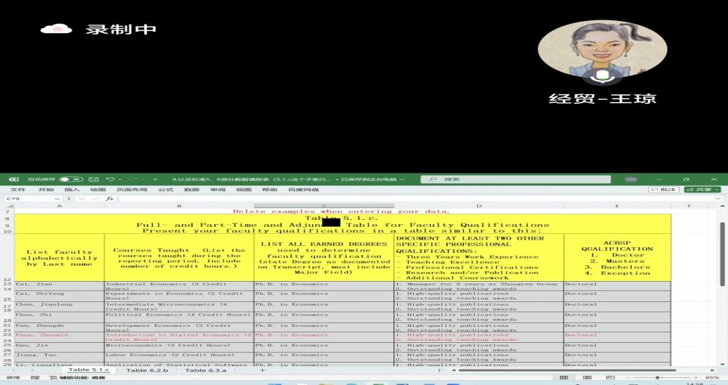 公司经济学专业ACBSP认证工作主要负责人、系主任王琼副教授就团队队伍、课程结构以及自评报告中相关难点问题与对方进行了深入交流。