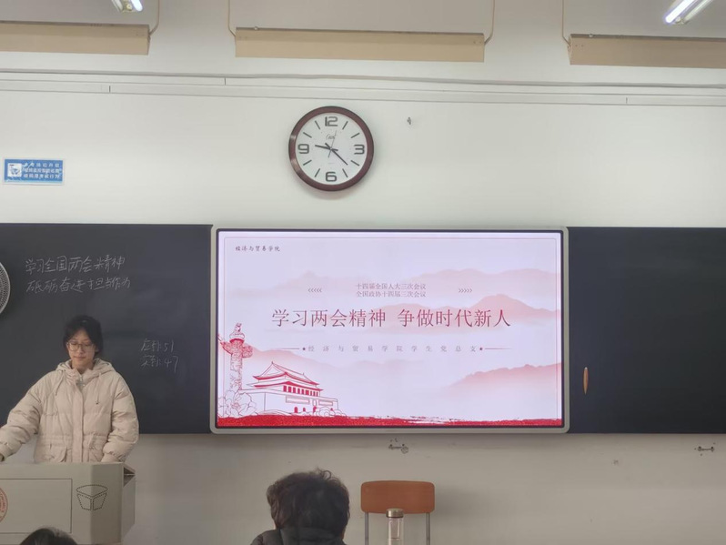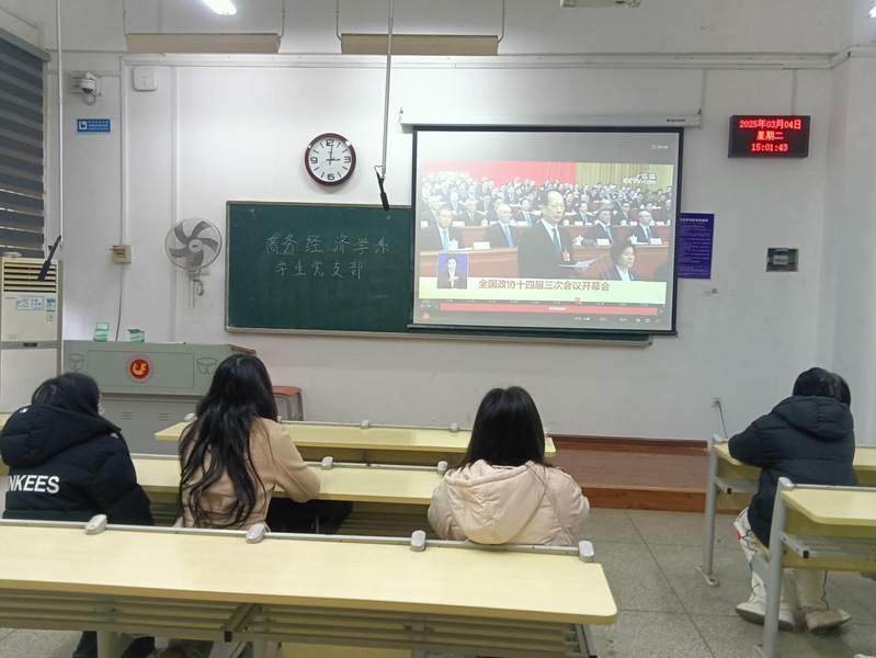各党支部组织党员观看2025年全国两会开幕式直播,并围绕学习内容开展讨论。经济学系员工党支部副书记杨悦悦认为:“政府工作报告中提出要“着力推动高质量发展”,这不仅是经济问题,也是价值命题。作为经济学专业的员工,我们不仅要学会如何计算GDP的增长速度,更要理解发展为了谁、发展依靠谁的根本问题。从“经济人”到“时代新人”的转变,正是对经济学“理性人假设”的超越,也是对青年人精神境界的升华。”国际经济与贸易学专业党员聂一休同志表示:“在观看大会后,我深切感受到国家对教育和人才培养的高度重视。这激励着我更加努力地学习专业知识,不断提升自己的综合素质。我要积极参与各类学术活动和实践项目,拓宽国际视野,增强跨文化交流能力,努力使自己成为一名既懂专业知识又具备国际视野的高素质人才。”