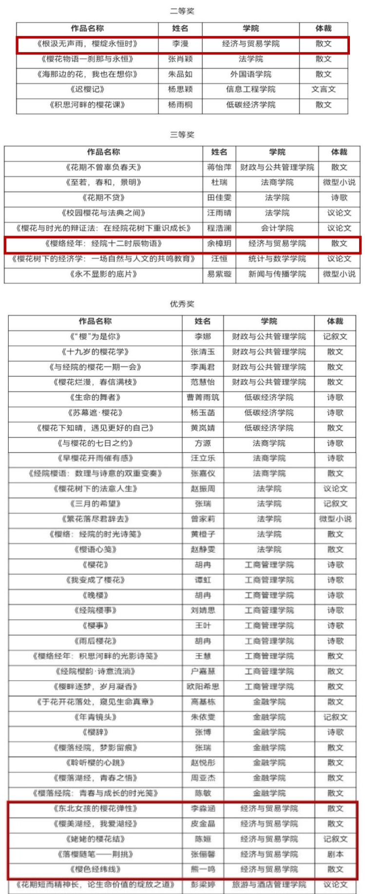 近日,2025年qmh球盟会“经院的樱花”主题征文比赛获奖名单正式公布,公司学子在此次比赛中表现出色,共获得二等奖1项、三等奖1项、优秀奖5项,获奖人数在参赛公司中名列前茅。