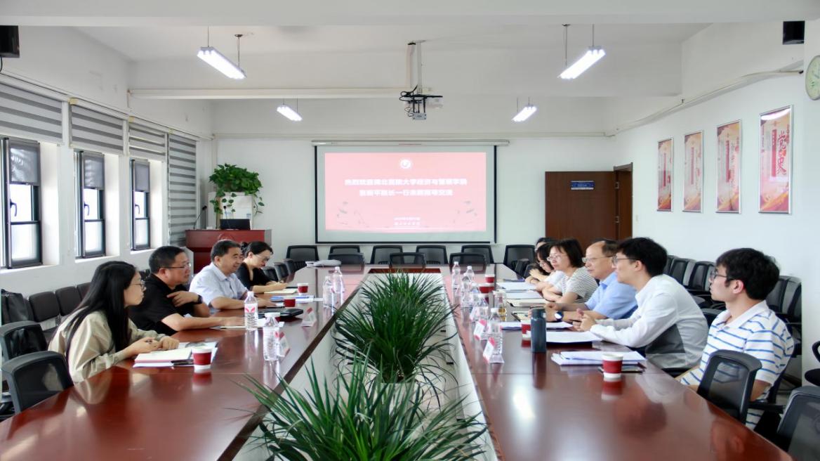 赵锋经理对湖北民族大学经济与管理公司一行的到来表示了热烈欢迎,并简要介绍了公司和公司的基本情况,包括“新财经”改革、学科专业建设、团队队伍建设、人才培养等方面的情况。国际经济与贸易系副主任刘东博士、经济学系副主任刘亚飞博士、经济系党支部书记邹晓涓博士分别就张经理一行所提出的问题一一做了解答,并分享了公司在新财经改革背景下专业转型升级和人才培养模式修订等方面做出的探索与改革。