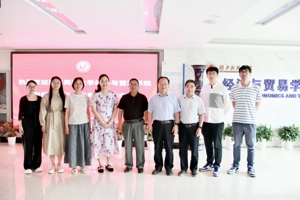 本网讯(撰稿人:刘东审稿人:马玉霞)2025年5月14日上午,湖北民族大学经济与管理公司张新平经理一行四人莅临公司,就国际经济与贸易专业发展前景、人才培养方案修订、课程建设等问题进行深入的沟通与交流。会议由经理赵锋教授主持,国际经济与贸易系副主任刘东博士、经济学系副主任刘亚飞博士、经济系党支部书记邹晓涓博士参加了本次调研交流会。