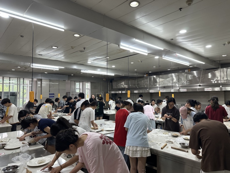 课程第二阶段进入白案实操环节,同学们以小组为单位进行分工,有人负责揉面搓条,有人专注擀皮,还有人包馅摆盘,面团在同学们手中不断变换形态,一盘盘精美的饺子很快就呈现在了大家面前。当热气腾腾的水饺出锅后,同学们围坐在一起品尝自己的劳动成果,纷纷洋溢出了满意的笑容,互相分享了自己的心得与收获。