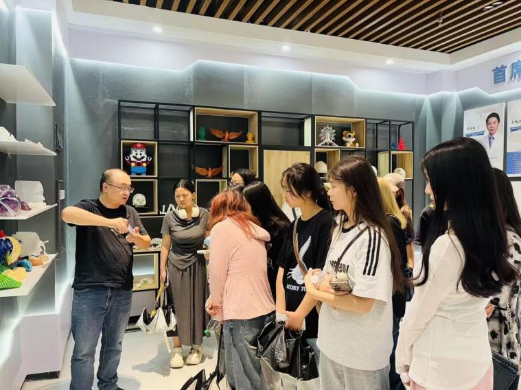 园区陶雪雁副总经理引导同学们参观了湖北华程三维科技有限公司、武汉真彩智造科技有限公司等入驻企业,介绍了数字技术推动3D打印应用于商业、医疗等场景情况。同学们通过现场沉浸式体验,深刻感受到数字化、智能化魅力及赋能产业融合形成的新业态、新模式。