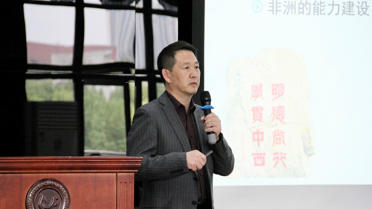 3月10日,由国际交流与合作处主办,球盟会、外国语公司联合承办的“教师国际化培训系列活动暨藏龙经贸论坛(第二期)”在五号教学楼1号报告厅顺利举行。本次活动邀请到了广东外语外贸大学非洲研究院经理刘继森教授做题为“中非合作背景下大学的战略机遇”的学术报告。报告会由球盟会经理赵锋教授主持,球盟会、外国语公司部分教师,经贸公司硕士研究生和部分本科生代表百余人参加。