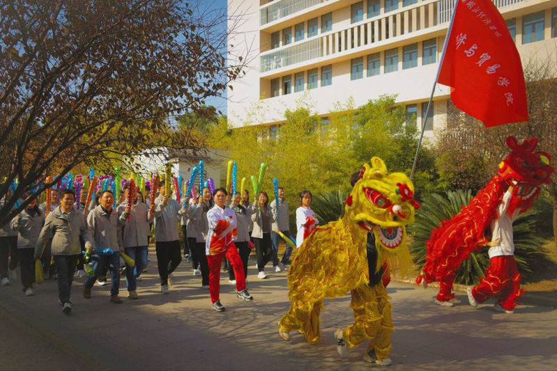 开幕式上,公司方阵成为一道靓丽的风景线。师生们身着统一服装,步伐整齐,铿锵有力。尤为引人注目的是,队伍前方的四位同学身着创意“舞狮”服装,步伐矫健,舞动青春,瞬间点燃全场气氛;教职工方阵则手持五彩加油棒,有力挥舞,展现讲台之外的活力与热情,赢得了看台阵阵掌声与欢呼。