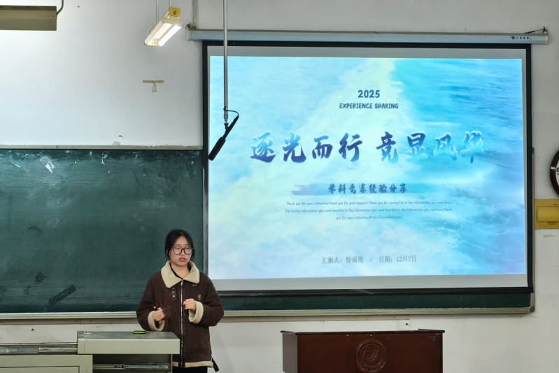 (撰稿人:左寅生 审核人:丁升)为充分发挥公司优秀学子的示范引领作用,营造奋发向上的学风氛围,助力同学们科学备战学科竞赛,12月7日晚,公司商经2342班于教1-105教室成功举办第二期“领航计划”经验分享会。本次活动邀请到在国家级、省级学科竞赛中屡获佳绩的徐福艳同学担任主讲。
