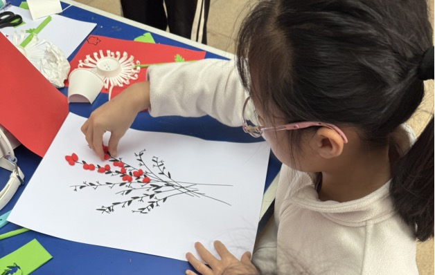 手工环节将活动推向高潮。在志愿者细致的指导下,孩子们动手制作“创意粘土插花”与“茱萸图案”。揉捏、拼接、点缀……一双双小手认真地将粘土变成一朵朵小花;在另一区域,孩子们发挥想象力,将一次性水杯改造为充满童趣的“茱萸花朵”,并在上面绘制表情,寄托对长辈健康长寿的美好祝愿。孩子们神情专注,笑语盈盈,创作热情洋溢整个活动室。