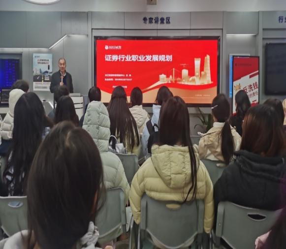 主题报告环节,工作人员系统解读了中国金融市场的核心职能、内在特性、当前运行态势及未来发展趋势,同时介绍了证券行业的岗位设置、知识能力要求与职业发展路径,现场解答了同学们关于专业学习与行业入门的疑问,为新生规划未来学业与职业方向提供了参考。