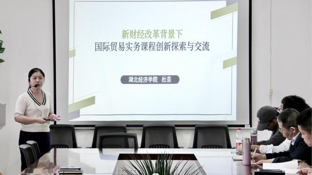 杜芸老师从对“新财经”的理解,新财经下教学模式重构与创新,国际贸易实务混合式课程模式融合课程思政的探索及未来工作方向四个方面,详细阐述了新财经改革背景下国际贸易实务课程基层教学组织的工作思路及具体做法。