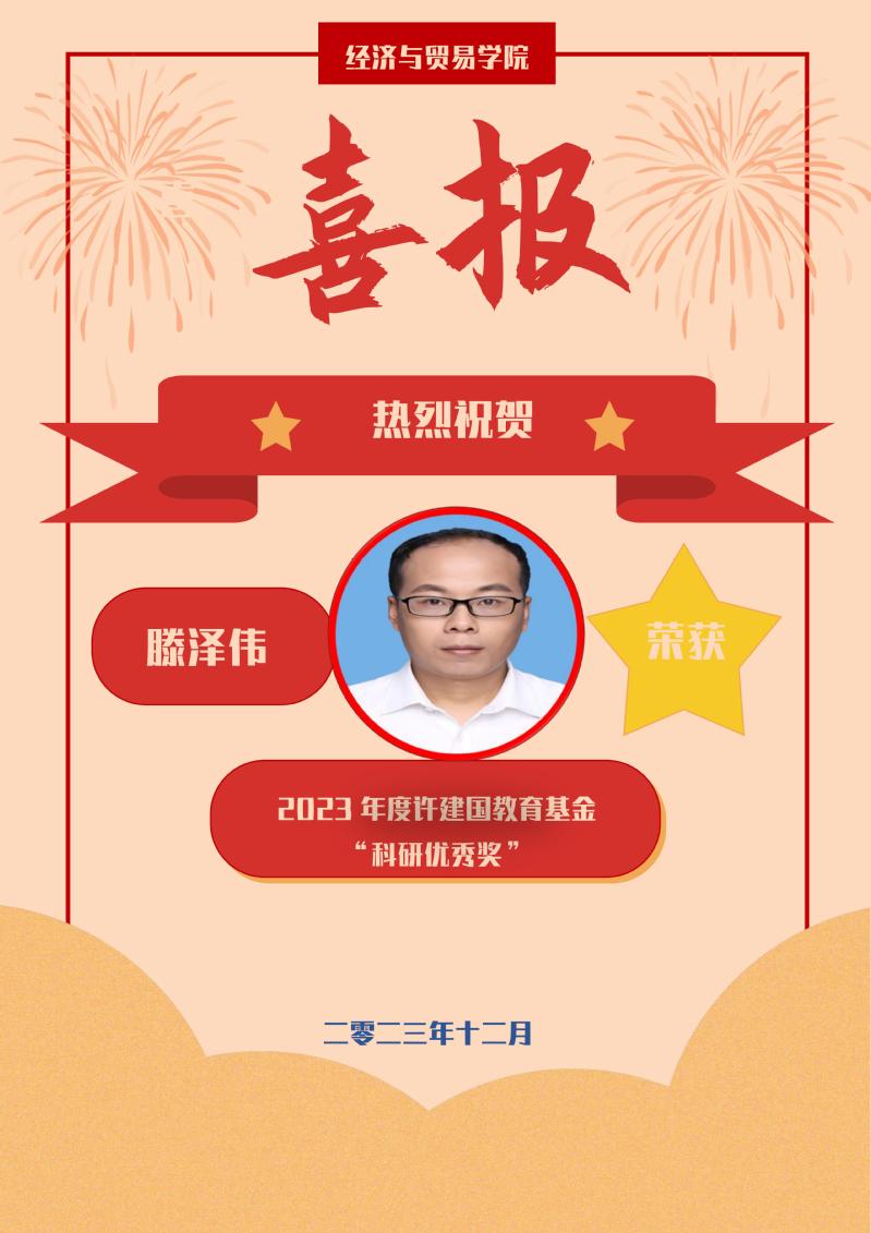喜报!滕泽伟老师喜获2023年度许建国教育基金“科研优秀奖”