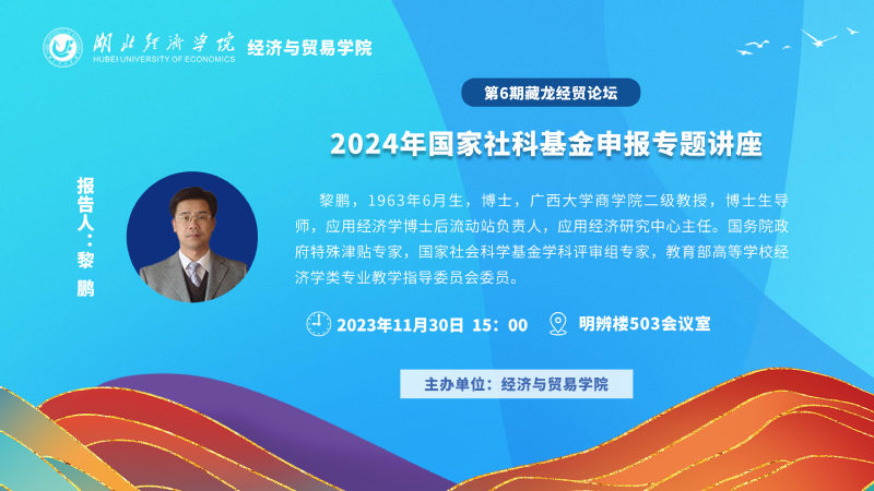 【讲座预告】第6期藏龙经贸论坛暨2024年国家社科基金申报专题讲座