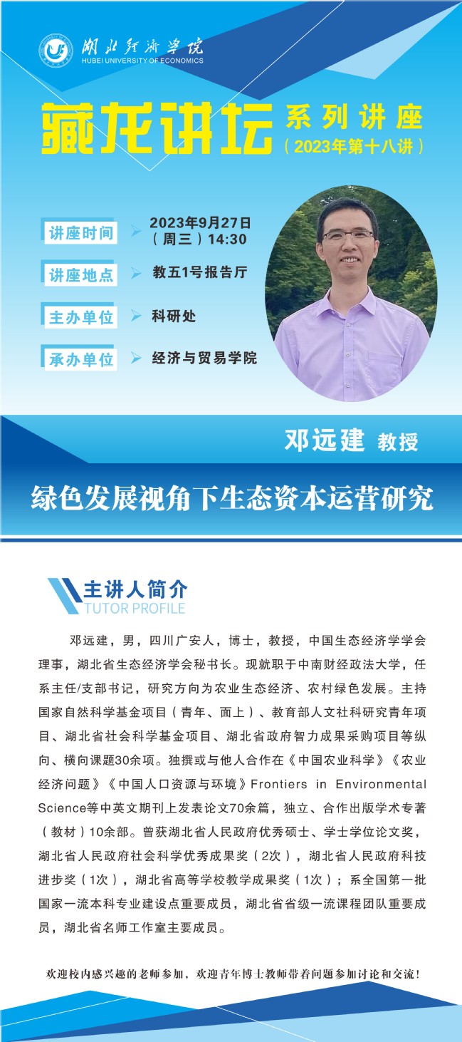 【讲座预告】藏龙讲坛系列讲座2023年第十八讲